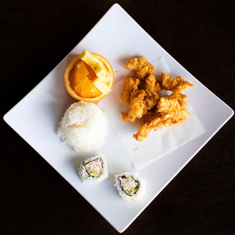 Children 12 and under | Choice of side (pick one): broccoli, veggies, fruit, or French fries | Extra side +$2.00